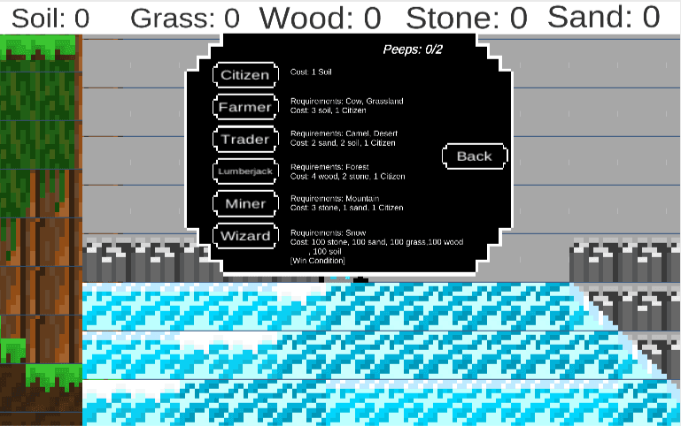 A god sim, where the player goes about the world collecting basic resources to craft the people and animals of this world.