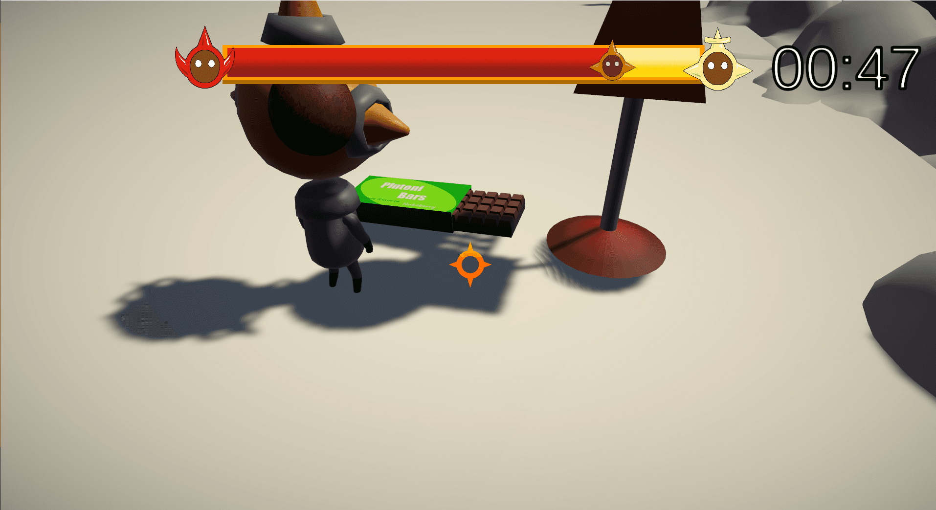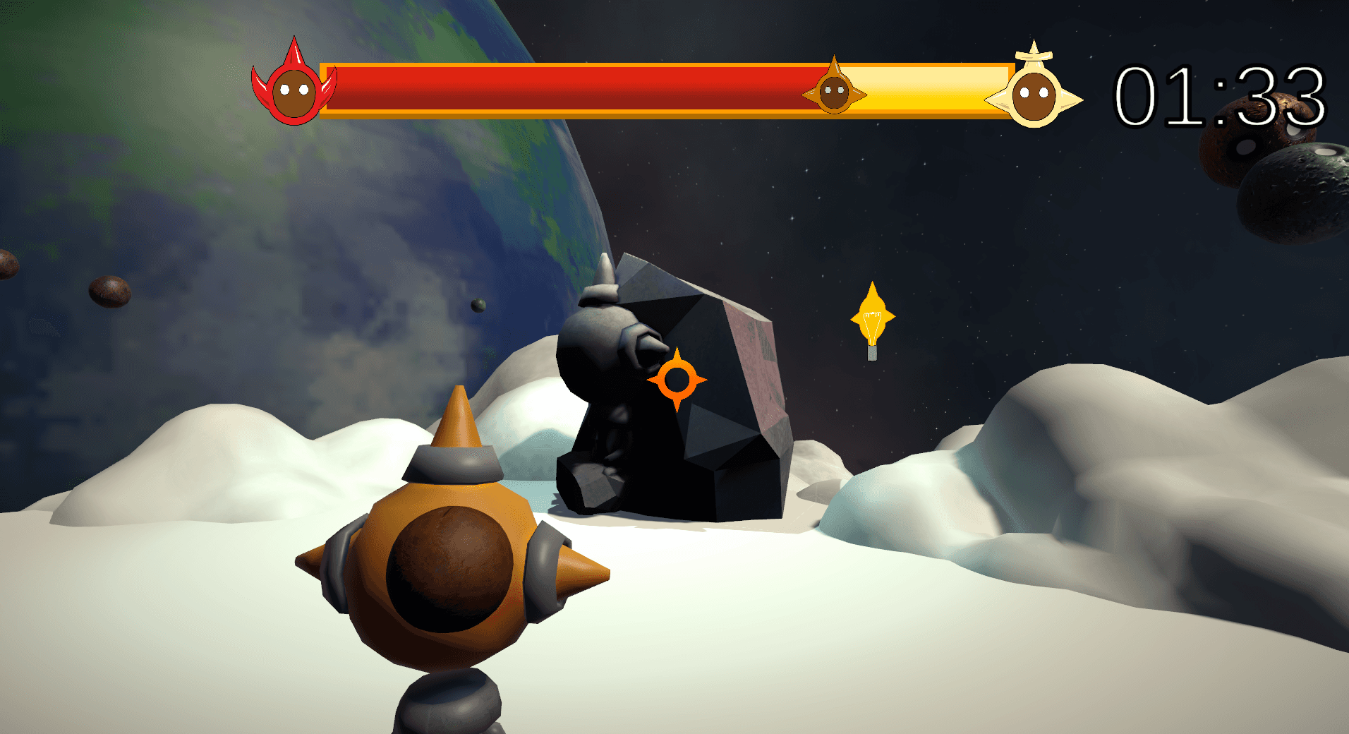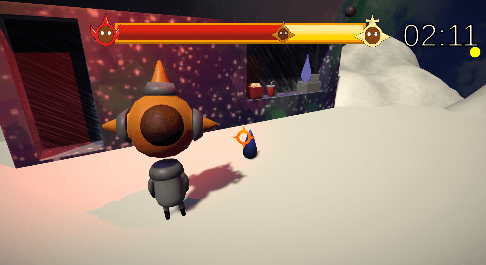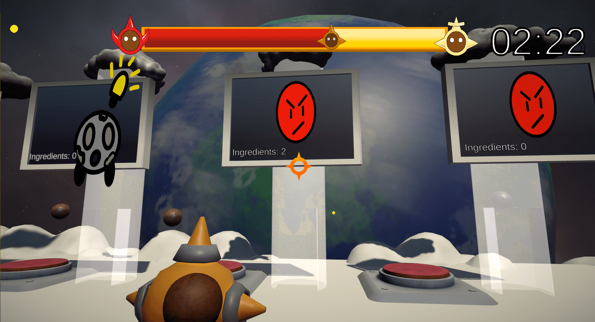 A 3rd person game, where the players objective is to keep the balance of Earth in check by granting wishes for the populace, using resources around their work station.